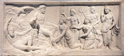 普罗米修斯的故事是古希腊神话中富有深意的篇章之一,这件公元2世纪早期的古罗马石棺浮雕,通过细腻的刻画再现了普罗米修斯受罚的场景。