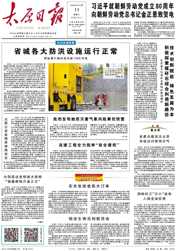 央广《中国之声》的《全国新闻联播》栏目以《我国北方多地开启秋雨绵绵模式》为题,报道了太原城管部门依托智慧环卫综合监管系统应对降雨影响,重点对城区1200多条主次干道进行清理作业,保证雨水排水系统正常运行;为保障民众顺利出行,太原公交部门在发车前加强车况检查,及时排查安全隐患,并依托智能调度系统向驾驶员推送道路积水、拥堵等预警信息。(张秀丽)