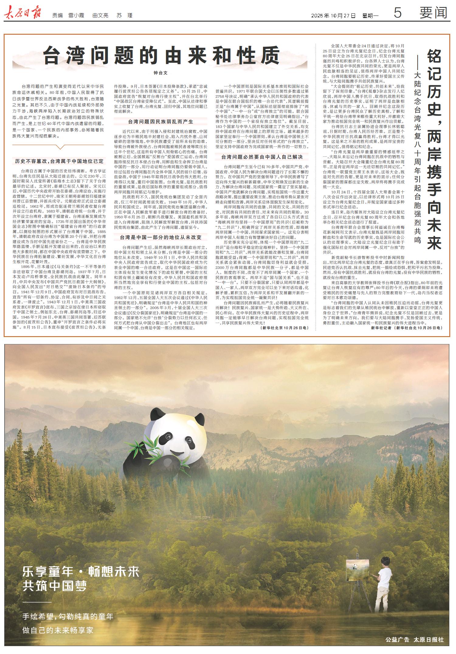 铭记历史,两岸携手向未来