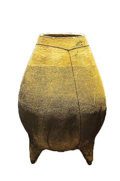娄烦尹家窑出土的夏商时期三足蛋形陶瓮(资料图片)