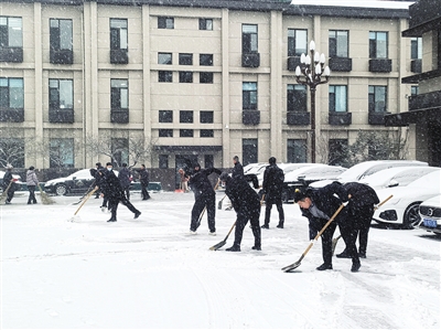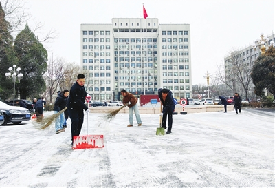 市政府机关工作人员清雪除冰。赵世凯 摄