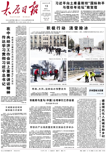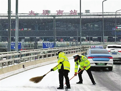 12月11日至12日,我市迎来大范围降雪。据市气象台消息,截至12日17时,我市各县(市、区)积雪深度2~6厘米。为保障城市有序运转和市民出行安全,全市上下以雪为令,迅速开启清雪除冰模式,紧张有序应对太原今冬首场降雪。