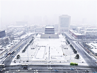 12月11日深夜,太原初雪如期而至,为城市披上了一层素雅的银装,五一广场黑白交错,宛如一幅水墨画卷。王韵菲 摄
