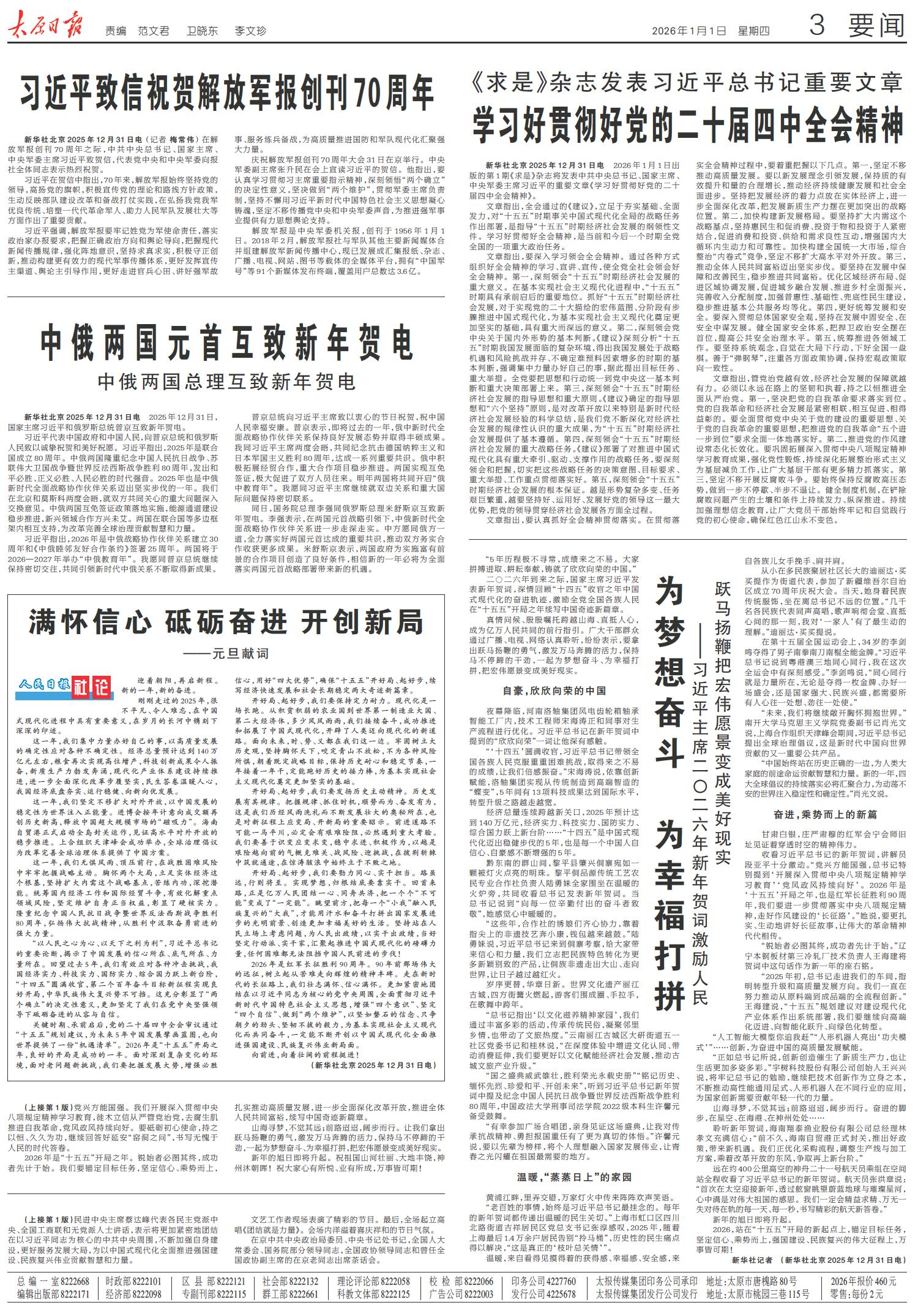 中俄两国元首互致新年贺电