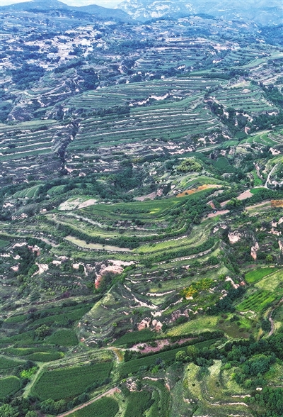 从蜿蜒的山路拐入乡道,大片的粉色、白色格桑花在甘草峁村口盛放。格桑花海后,层层叠叠的梯田景观与窑洞民居静静呈现。山谷沟壑纵横,幽静中鸡犬相闻,田园景色令人沉醉。山中缓行,处处皆景。“看,这里有好多苹果!”看到大片果园,对面自驾而来的一家人惊喜地呼喊。