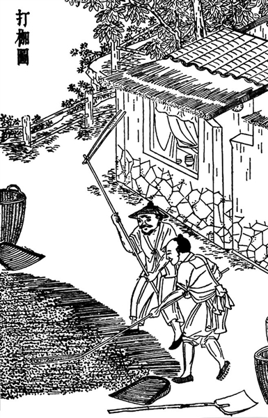 清《钦定授时通考》中的《打枷图》(资料图片)