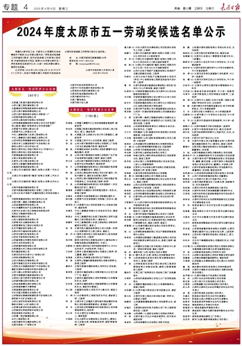 太原市五一劳动奖章公示名单