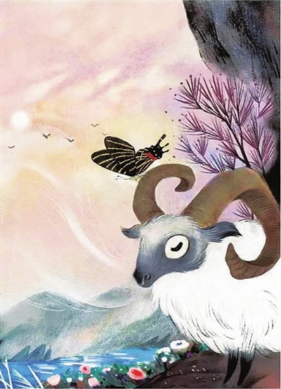 《飞越沧海的蝴蝶》的故事看似简单,却越品越丰富。这只蝴蝶破茧出壳后,与岩羊、鹰、蜘蛛、蜂群、蛾子、人类、信鸽、乌鸦、雌蝶、白颊长臂猿、鲣鸟、老猿、老鼠等相遇,满足了儿童对动物世界天然亲近的趣味想象,单纯、美好、简约兼具艺术性,可以从多重角度解读。