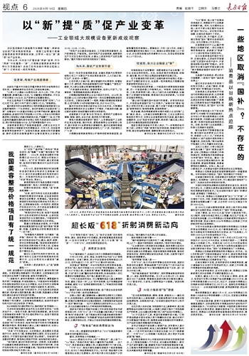 在湖北,截至6月11日,今年全省3C数码、家电、厨卫、电动自行车等以旧换新产品总销售量3358.15万台,累计带动销售总额414.83亿元;在辽宁,全省参与消费品以旧换新活动的消费者已达200万人次,直接拉动消费超过150亿元……从各地落地情况来看,政策进展积极、效应持续显现。