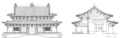 圣母殿立面图与剖面图(来源:柴泽俊等《太原晋祠圣母殿修缮工程报告》)