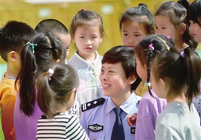 杨蓉在育英幼儿园和小朋友们就自救自护知识进行互动。(图片由被采访者提供)