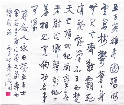 徐悲鸿行书《咏田横五百士》(作者拍摄)