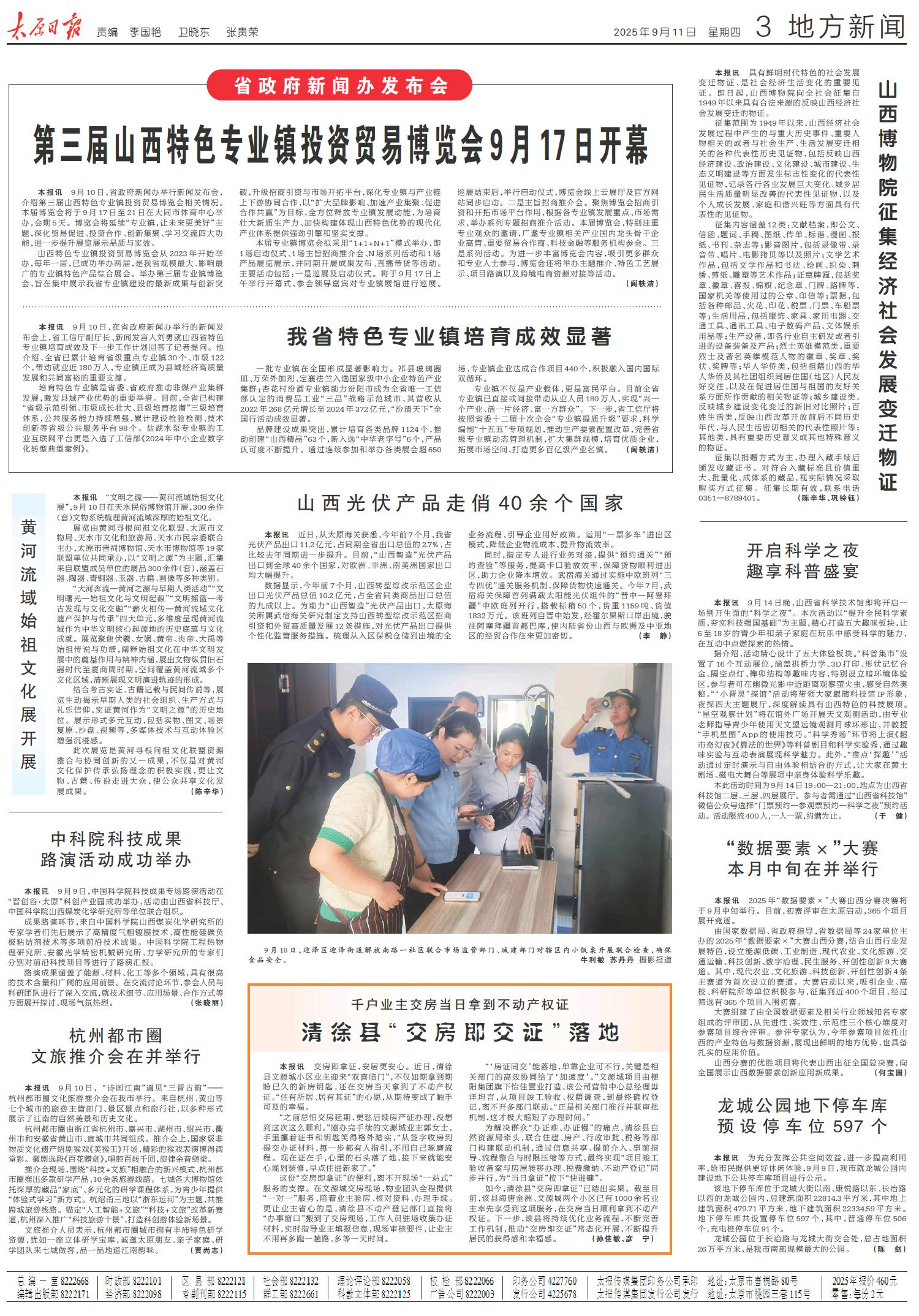 第三届山西特色专业镇投资贸易博览会9月17日开幕