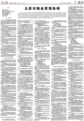 第一条 为了规范物业管理活动,维护物业管理各方的合法权益,营造良好的居住环境,促进和谐社区建设,根据《中华人民共和国民法典》、国务院《物业管理条例》和《山西省物业管理条例》等法律、法规的规定,结合本市实际,制定本条例。