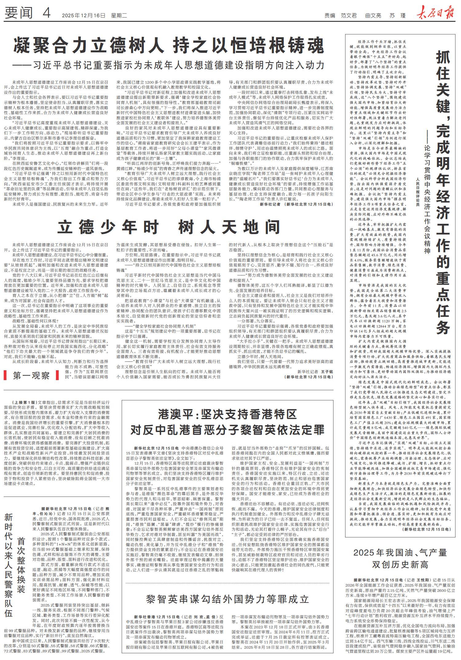 抓住关键,完成明年经济工作的重点任务