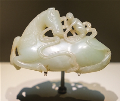 山西博物院展品清代镂雕马上封侯白玉带扣