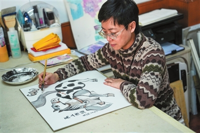 青年画家郝文菲正在绘马图