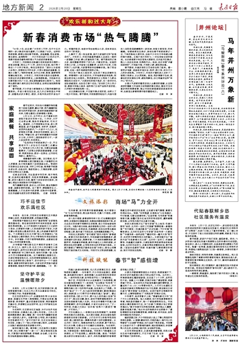 步入各大商场,新春装饰年味十足:灯光璀璨如星河倾泻,乐曲轻快似春潮涌动,各楼层店铺客流络绎不绝,多元业态交织成春节消费的生动图景,助力市民有滋有味过大年。为提升假日体验,诸多商场将正月初一至初七的营业时间延长,自然闭店;非遗展演、民俗互动等主题活动轮番上演,既丰富了市民生活,也持续聚拢商圈人气。