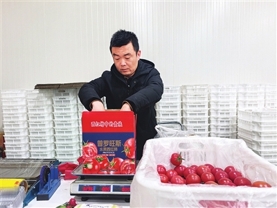 刘艳君正在将村民们送来的普罗旺斯西红柿打包发货。