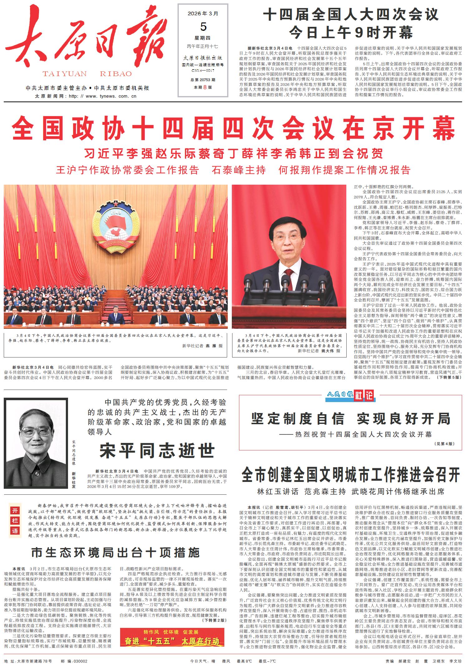 全国政协十四届四次会议在京开幕