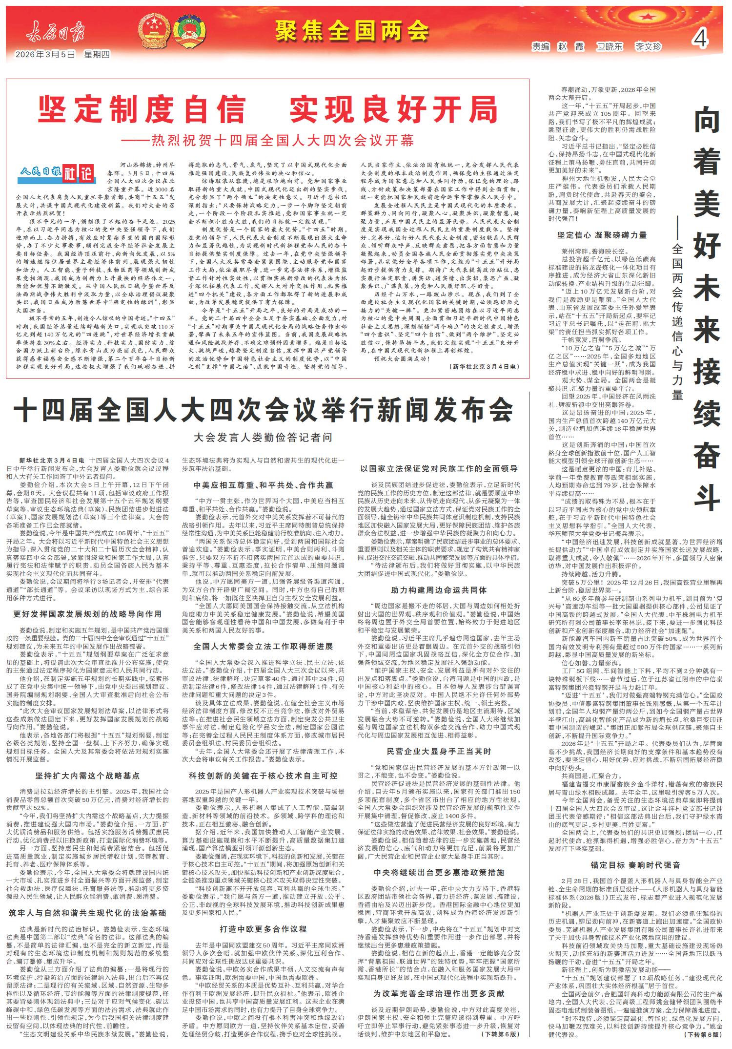 十四届全国人大四次会议举行新闻发布会