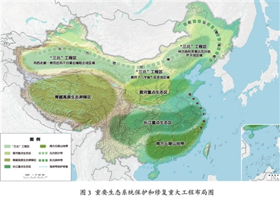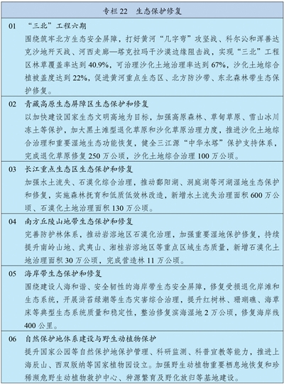 统筹推进重要生态系统保护和修复重大工程,持续巩固以“三区四带”为骨架的国家生态安全屏障体系。打好“三北”工程攻坚战,推动三大标志性战役取得决定性胜利。深入推进青藏高原生态保护,加强重点区域水土流失治理和石漠化治理。科学开展大规模国土绿化行动,推进森林质量精准提升和国家储备林建设,森林蓄积量达到224亿立方米,统筹草原生态修复与合理利用,加强湿地保护修复。推进超引地表水和超采地下水治理,开展历史遗留废弃矿山生态修复。