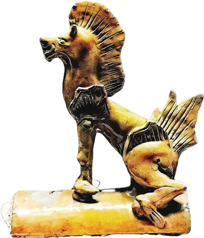明代黄釉天马脊兽陶瓦(作者供图)