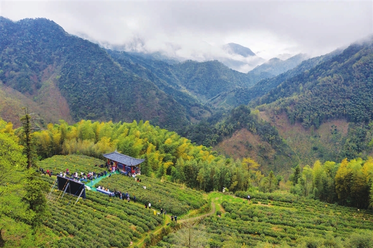 东坑村高山有机茶分布在长达16公里的峡谷里,它们漫山遍野、恣意生长,在平均海拔600米到800米山壁上,与松、杉、野樱为伍,还伴着“叮咚”的泉水,“野”味十足。因为生长的地方高海拔、气温低,东坑高山有机茶也成了“晚茶”,通常3月底4月初开采,4月上旬才是采摘高峰期。