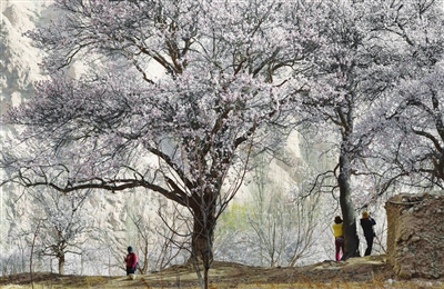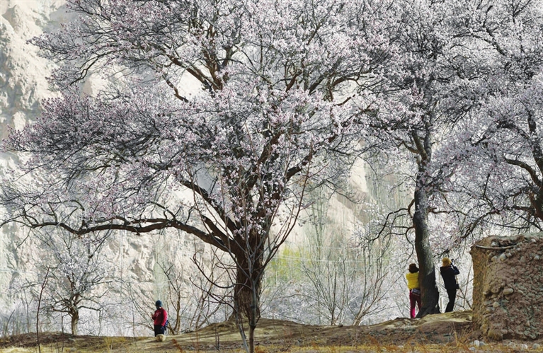 三月三十一日,在阿克陶县塔尔塔吉克民族乡巴格艾格孜村,游客在杏树下拍照。眼下,春意渐浓的帕米尔高原迎来杏花绽放的时刻。位于帕米尔高原的新疆阿克陶县塔尔塔吉克民族乡盛开的杏花,吸引众多游客前来观赏。
