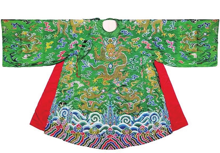 “妆花”是云锦中织造工艺最为复杂的品种,通经断纬,逐花异色,变化丰富,织造中至今仍不能被现代机器所替代,曾大量运用在明清龙袍等高档织物上。