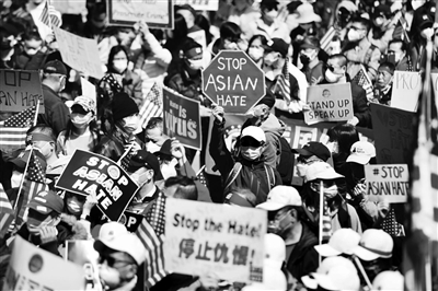 当天,大量示威者在美国纽约举行主题为“停止仇恨犯罪、反对种族歧视、捍卫亚裔权益”的大型集会游行活动。