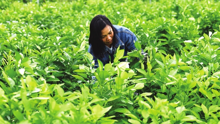 | 4月5日,广西钦州市久隆镇青草村村民在田间护理果苗。 新华社记者 张爱林 摄 |