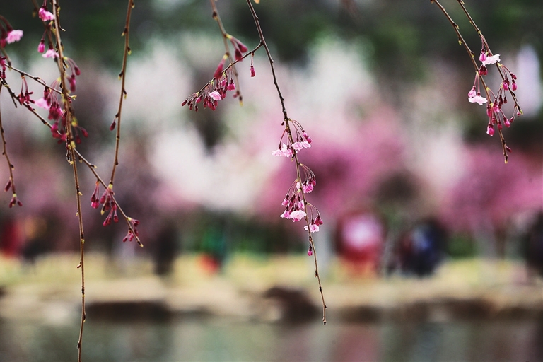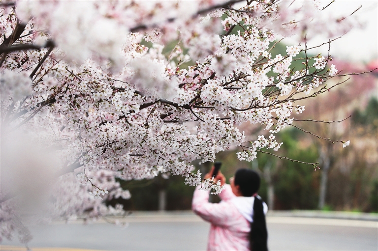 据介绍,樱花分为早樱和晚樱,早樱代表品种是“染井吉野”,目前已进入盛放期,它的花朵有5枚花瓣,花色在刚绽放时是淡红色,完全绽放时会逐渐转白。晚樱的代表品种是关山樱,俗称“红樱”,花瓣约30枚,多分枝,花开浓红,灿若霞飞。其他名贵品种还有垂枝樱花、郁金樱、太白樱、阳光樱等几十个品种。