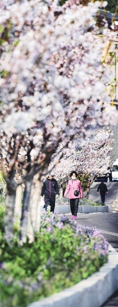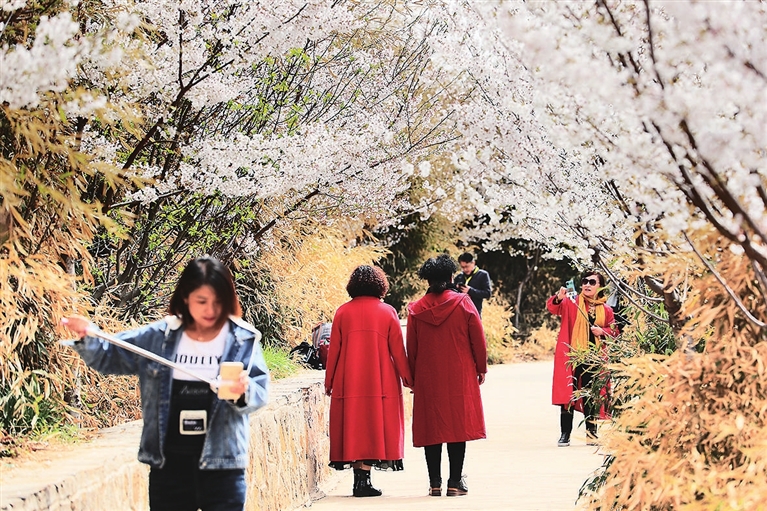 如今,凭借栽种的25万株樱花,玉泉山成为华北地区规模最大的樱花园。每年4月,粉的、红的、白的……云雾般弥漫的樱花次第盛开,漫山遍野,美不胜收。