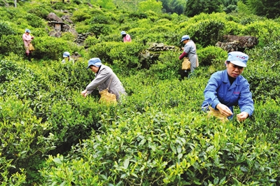 4月16日,茶农在武夷山星村镇桐木村茶山采茶。 清明过后,红茶之乡福建武夷山桐木村满山遍野的茶树吐出新芽,当地茶农迎来一年最繁忙的茶叶采摘加工季节。近年来,当地茶农大力发展正山小种红茶生产,茶叶生产已成当地农民增收致富的支柱产业。 新华社发 (邱汝泉 摄)