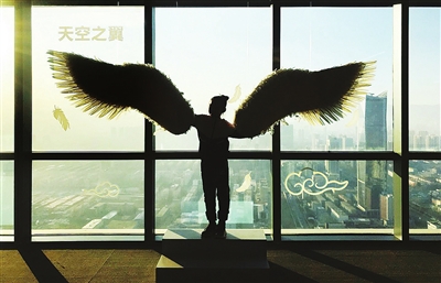 作者利用侧逆光效果突出主体人物,尤其是天使之翼的羽毛部分,在阳光的照射下轮廓分明,玻璃上的文字正好点明了此片的主题。