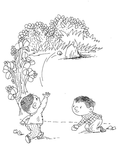 摸,用帽子将一只眼捂住,走向岗前,用石头把岗打倒,叫“打小瞎子”。用帽子将两只眼睛都捂起来叫“打大瞎子”,这一着难度最大。几人轮流反复打,先打完全套每次都成功者为胜。