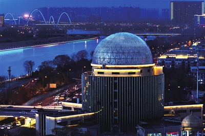 提起少年科技城,你首先想起的就是它那别致的造型——圆柱形的绿色主体,东北、西北、西南三翼向周围延伸,顶部是一个银色的半球体,仿佛一枚待发射的卫星。