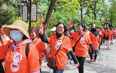 4月27日,迎泽区离退休干部健步行活动在文瀛公园举行,130余名老人参加了此次活动。通过重温入党誓词、党史知识竞赛、健步行等活动,使广大干部群众在强身健体的同时接受党史教育洗礼,集聚奋进力量。 米国伟 摄