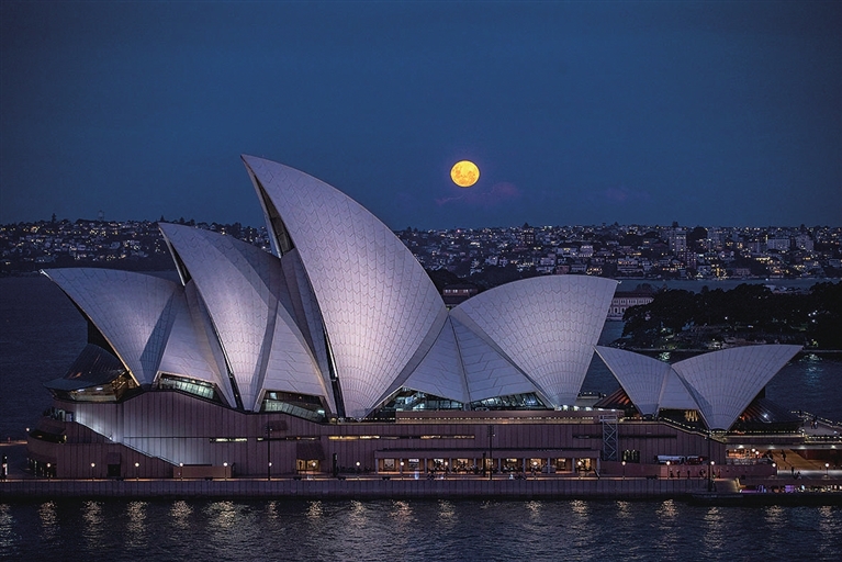 4月27日,“超级月亮”出现在澳大利亚悉尼歌剧院上方。
