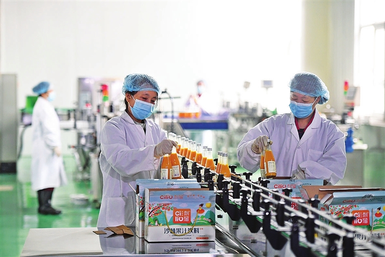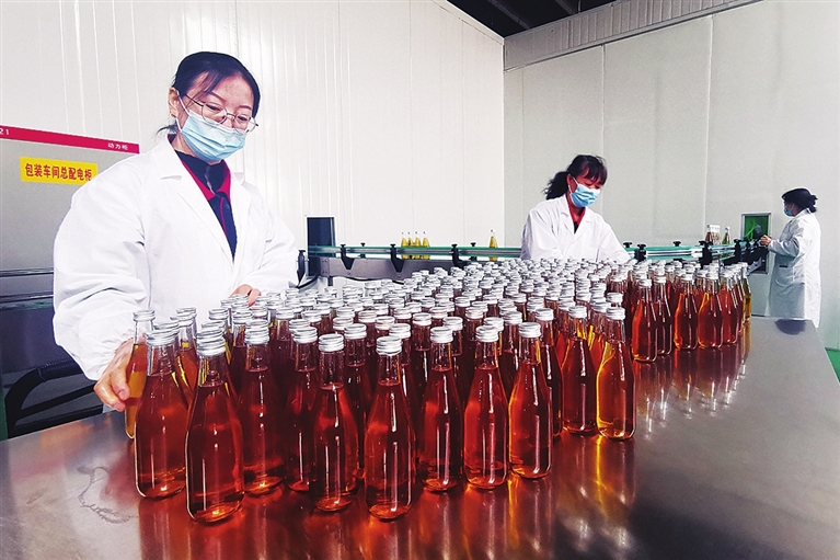 如今,山西饮领自主研发生产出沙棘酒、沙棘果汁、沙棘果油、沙棘果酱、沙棘原浆等7大系列20余个品种,市场反响良好。