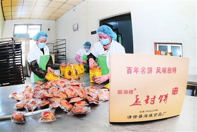 在孟封镇杨房村宽阔的街边,“饼屋”不少见,但承担“非遗”传承保护责任的却是清徐县海维食品厂。前店,后厂,传统滋味。