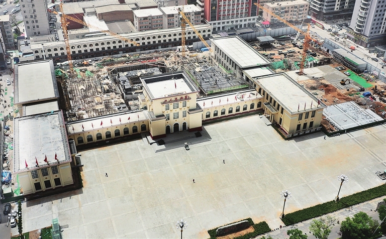 5月8日,太原工人文化宫北侧外立面改造一新,正在进行南侧主体工程建设。改造结束后,太原工人文化宫将成为省城重要的会议活动中心和市民文化广场。 邓寅明 摄