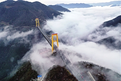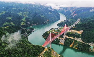 ②贵州剑榕高速清水江特大桥(2020年10月1日摄,无人机照片)。