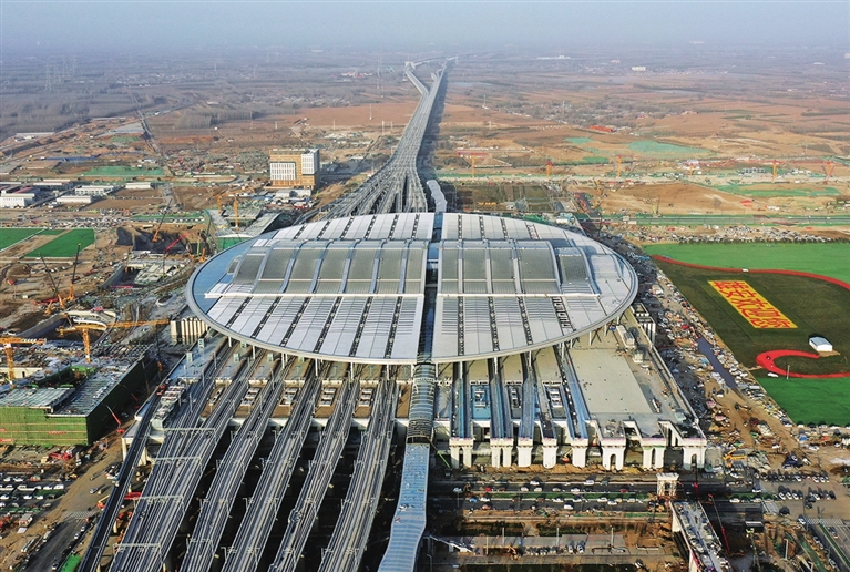 ⑥京雄城际铁路雄安站(2020年12月23日摄,无人机照片)。新华社记者 牟 宇 摄