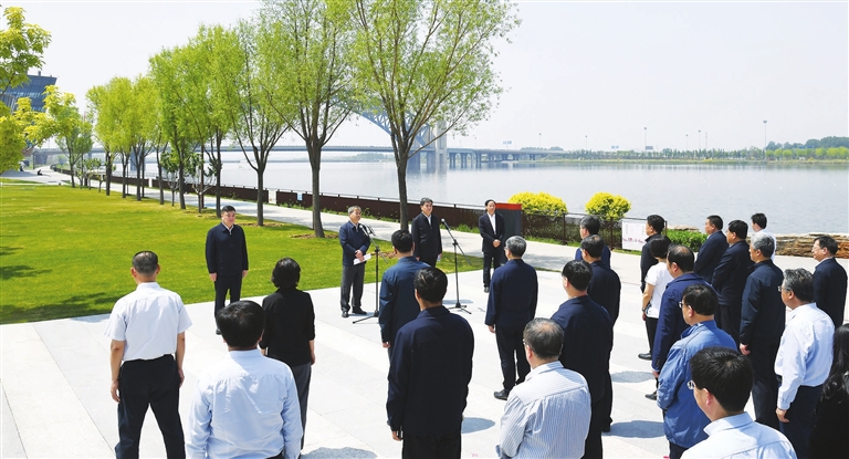 位于汾河晋阳桥段东岸的“汾河晚渡”景点,河面波光粼粼,画舫古朴典雅,晋阳桥雄伟绚丽,天际线、山脊线、水岸线层次分明,呈现出一幅河、舫、桥、山浑然一体的秀美画卷。“四治”工作推进会在这里召开。罗清宇指出,2017年6月以来,习近平总书记两次深入太原视察,这在我市发展进程中、党的历史上具有重大里程碑意义,特别是习近平总书记坚持治山、治水、治气、治城一体推进,再现“锦绣太原城”盛景的殷切嘱托,体现了党的领袖对太原发展的关心厚爱,是我们做好城市工作的根本遵循。连日来,市委组织开展重点工业项目、“四治”一体推进督导,就是要以践行领袖殷殷嘱托的实际成效,激励引导全市上下进一步统一思想认识,领悟精神实质,保持战略定力,不断推动习近平总书记视察山西重要讲话重要指示在太原落地生根、开花结果,努力再现“锦绣太原城”盛景。要贯彻新发展理念。完整准确全面把握创新、协调、绿色、开放、共享的深刻内涵,深化习近平总书记关于城市工作的重要论述,深刻认识城市是经济发展的主引擎、扩大内需的主战场,强化系统理念,拓宽发展视野,大力实施城市更新行动,既注重增量扩张,又注重存量提质,做好市域一体规划,进一步拉开城市框架,优化完善功能布局,形成更加完整的空间发展体系。要坚持人民至上。通过党史学习教育进一步增强宗旨意识,强化“人民城市人民建、人民城市为人民”理念,始终把人民放在心中最高位置,努力建设宜居宜业的人民城市,不断实现好、维护好、发展好最广大人民根本利益,不断提升人民群众的获得感幸福感安全感。要一体推进“四治”。坚持当下治与长久立结合,统筹山水林田湖草系统治理,强化“五水同治”,坚持空气质量改善优先,为民创城不停步,力戒形式主义、官僚主义,不断推动全域治山、系统治水、强力治气、综合治城取得新成效。要传承历史文脉。正确处理城市改造开发和历史文化遗产保护利用的关系,保历史、保格局、保文化、保文明,延续历史风貌,留住城市记忆,擦亮历史文化名城名片,不断增强太原的吸引力、影响力,以优异成绩庆祝建党100周年。