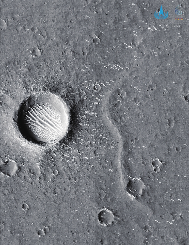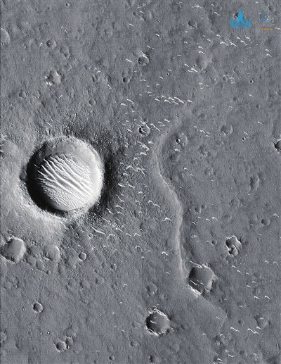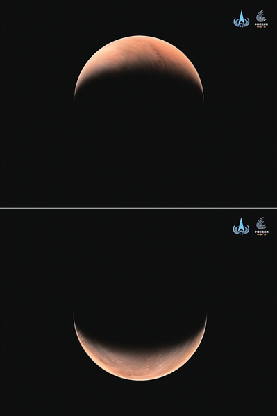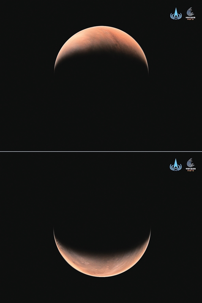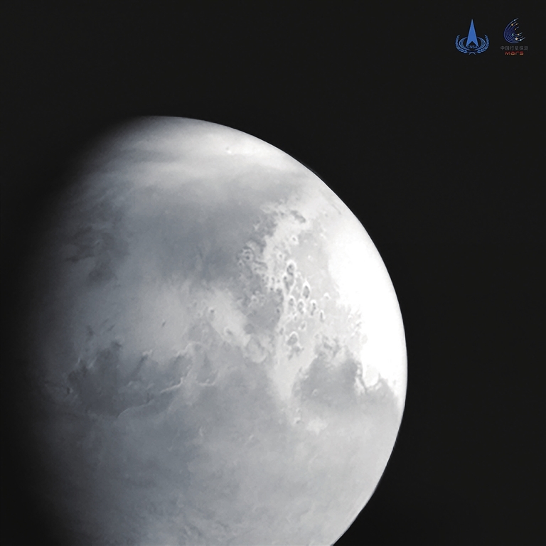 2021年2月12日,国家航天局发布天问一号制动捕获过程动态影像,火星大气层及表面形貌清晰可见。