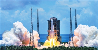 2020年7月23日,我国首次火星探测任务天问一号探测器在文昌航天发射场搭载长征五号遥四运载火箭成功发射。