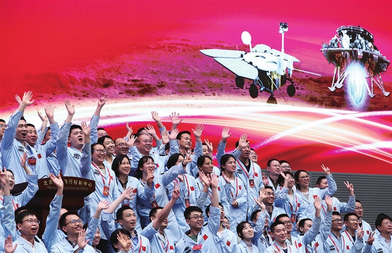 “天问一号成功着陆火星,成为我国星际探测征程上具有里程碑意义的重要一步。”我国首次火星探测任务工程总设计师张荣桥表示,经过六年的科研攻关,发射场百余天的坚守,以及295天的飞行控制,天问一号实现了一次教科书式的精准着陆,展示了我国深空探测技术的先进能力,体现了我们集中力量办大事的制度优势。