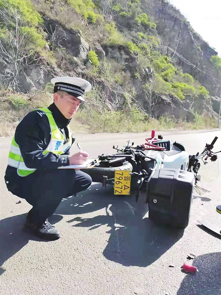 许多人认为当事故处理民警很威风,他们在路面上勘查照相、画图测量、调查取证,尤其是善于定分止争,在抓住关键点后能够有效地将各方矛盾化解于无形,但人们不知道事故处理民警的工作有多繁重、多辛苦。他三四天就要值一个班,为了缓解同事们的压力,还经常主动为同事替班,遇到重大交通事故,通宵达旦、连续作战也是家常便饭。